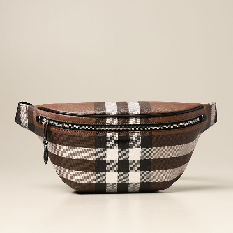 バーバリーチェック柄のボディバッグ。落ち着いたダークブラウンカラー。