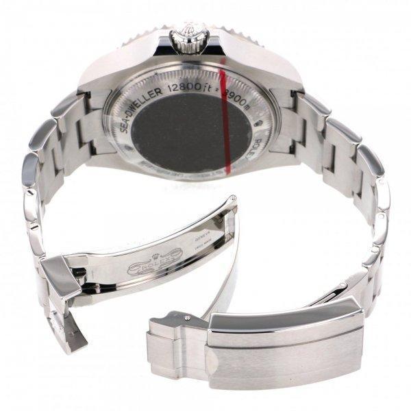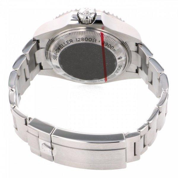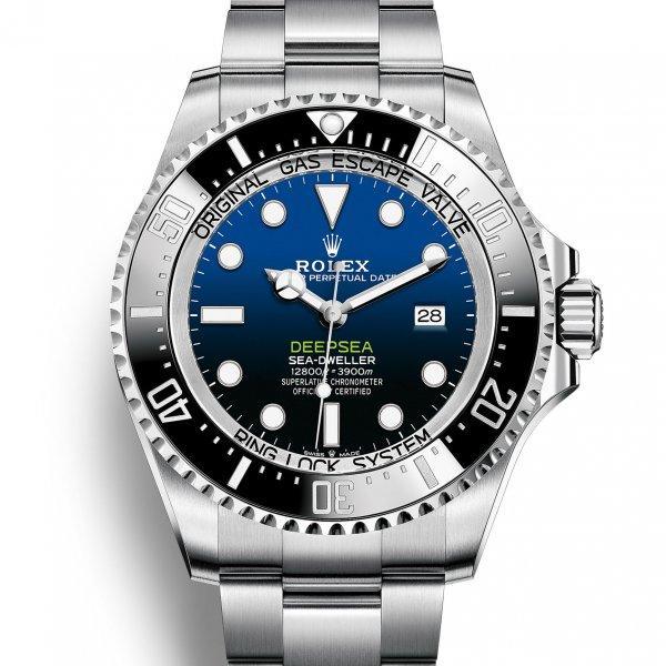 オイスタースチールのオイスター パーペチュアル ロレックス ディープシーはブラックセラミックベゼルとオイスターブレスレットを備える。